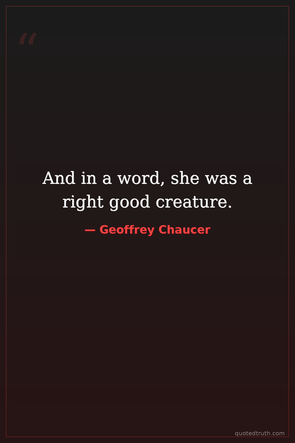 And in a word, she was a right good creature.