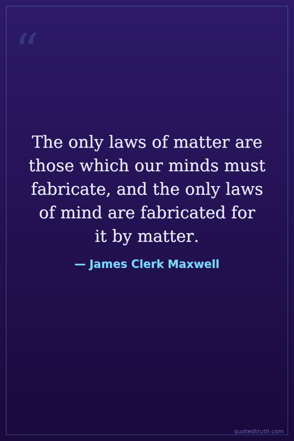 The only laws of matter are those which our minds must fabricate, and the only laws of mind are fabricated for it by matter.