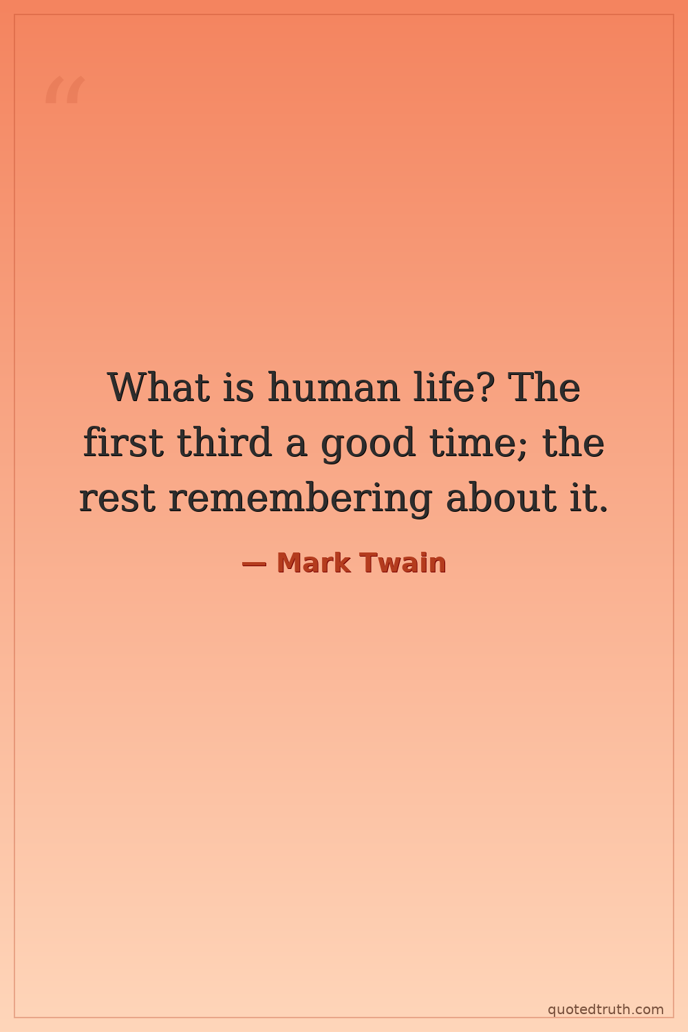 What is human life? The first third a good time; the rest remembering about it.