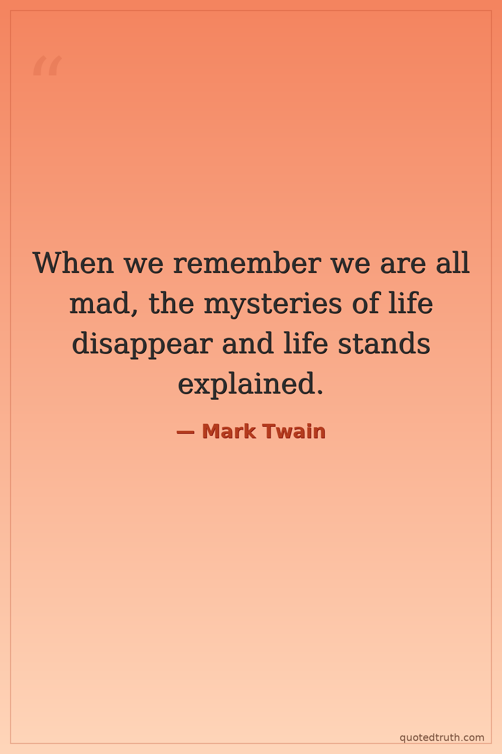 When we remember we are all mad, the mysteries of life disappear and life stands explained.