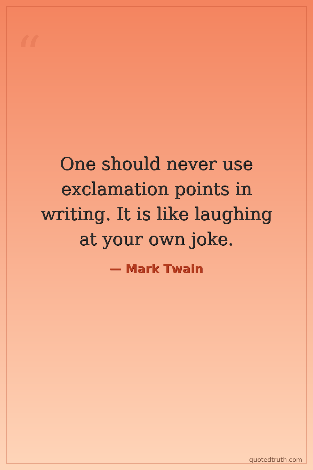 One should never use exclamation points in writing. It is like laughing at your own joke.