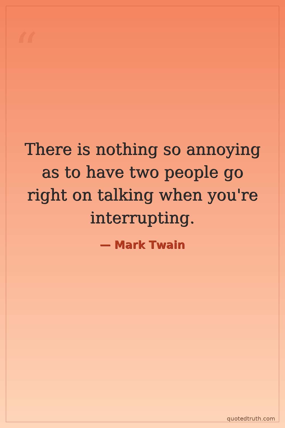 There is nothing so annoying as to have two people go right on talking when you're interrupting.