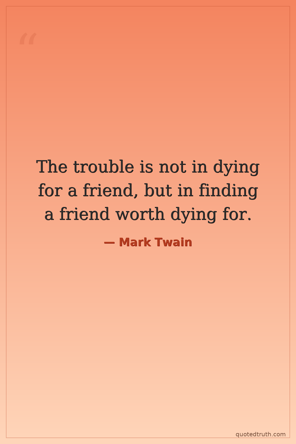 The trouble is not in dying for a friend, but in finding a friend worth dying for.