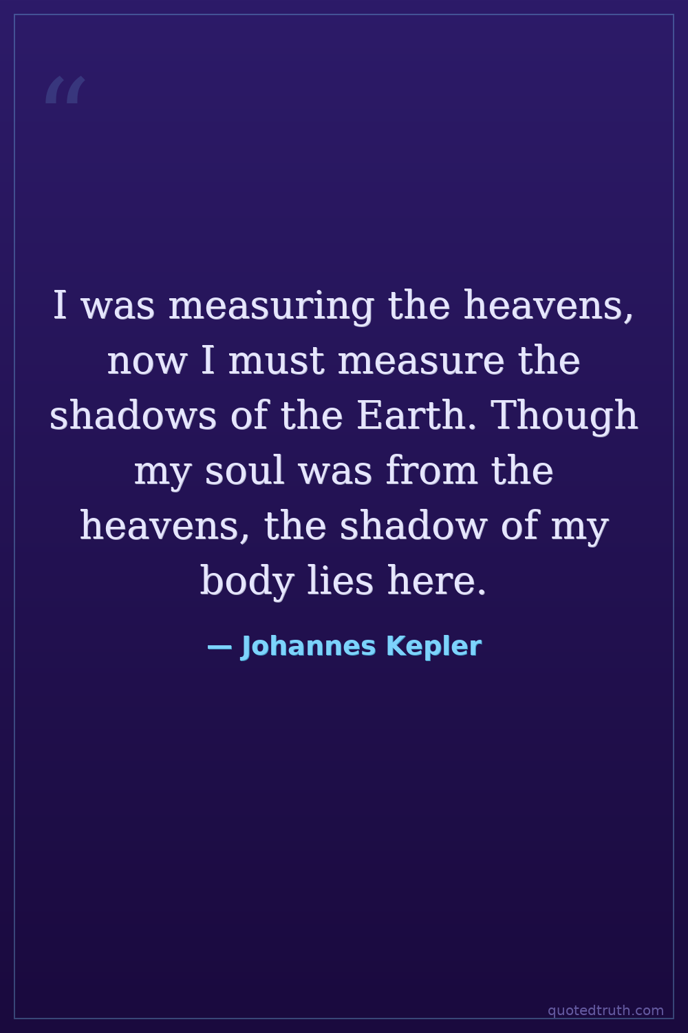 I was measuring the heavens, now I must measure the shadows of the Earth. Though my soul was from the heavens, the shadow of my body lies here.