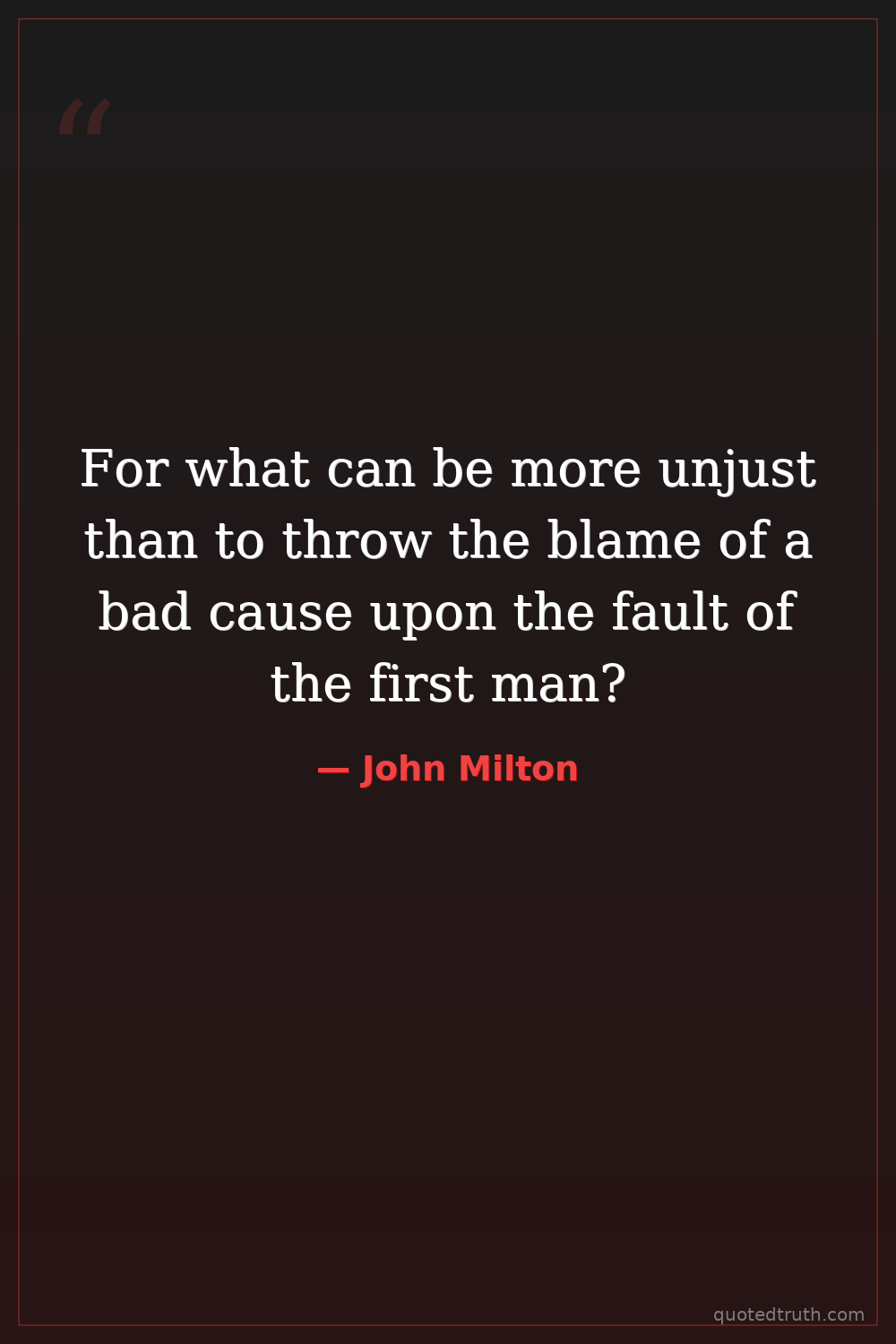For what can be more unjust than to throw the blame of a bad cause upon the fault of the first man?