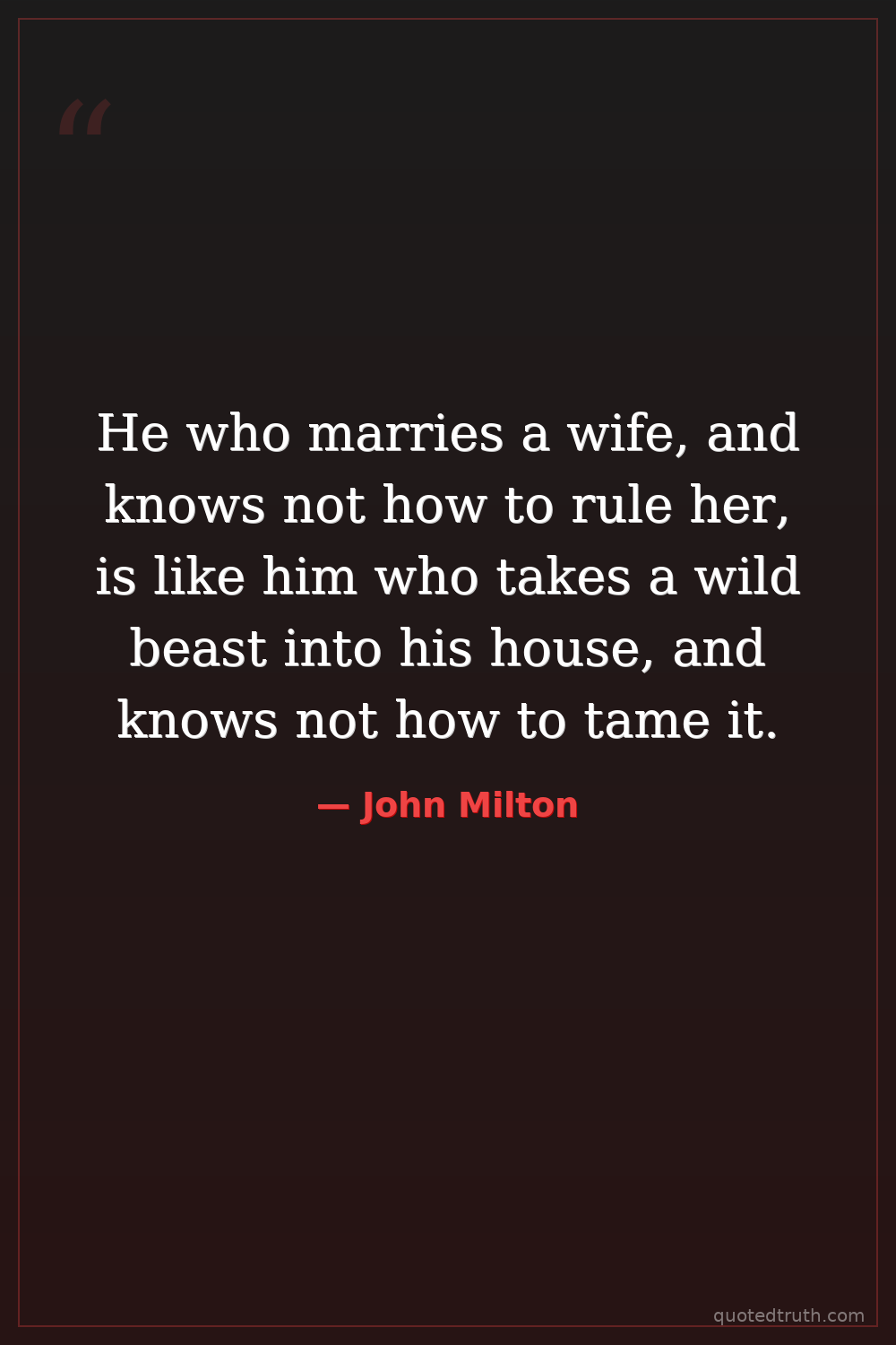 He who marries a wife, and knows not how to rule her, is like him who takes a wild beast into his house, and knows not how to tame it.