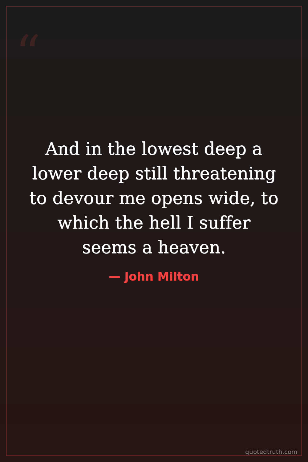 And in the lowest deep a lower deep still threatening to devour me opens wide, to which the hell I suffer seems a heaven.