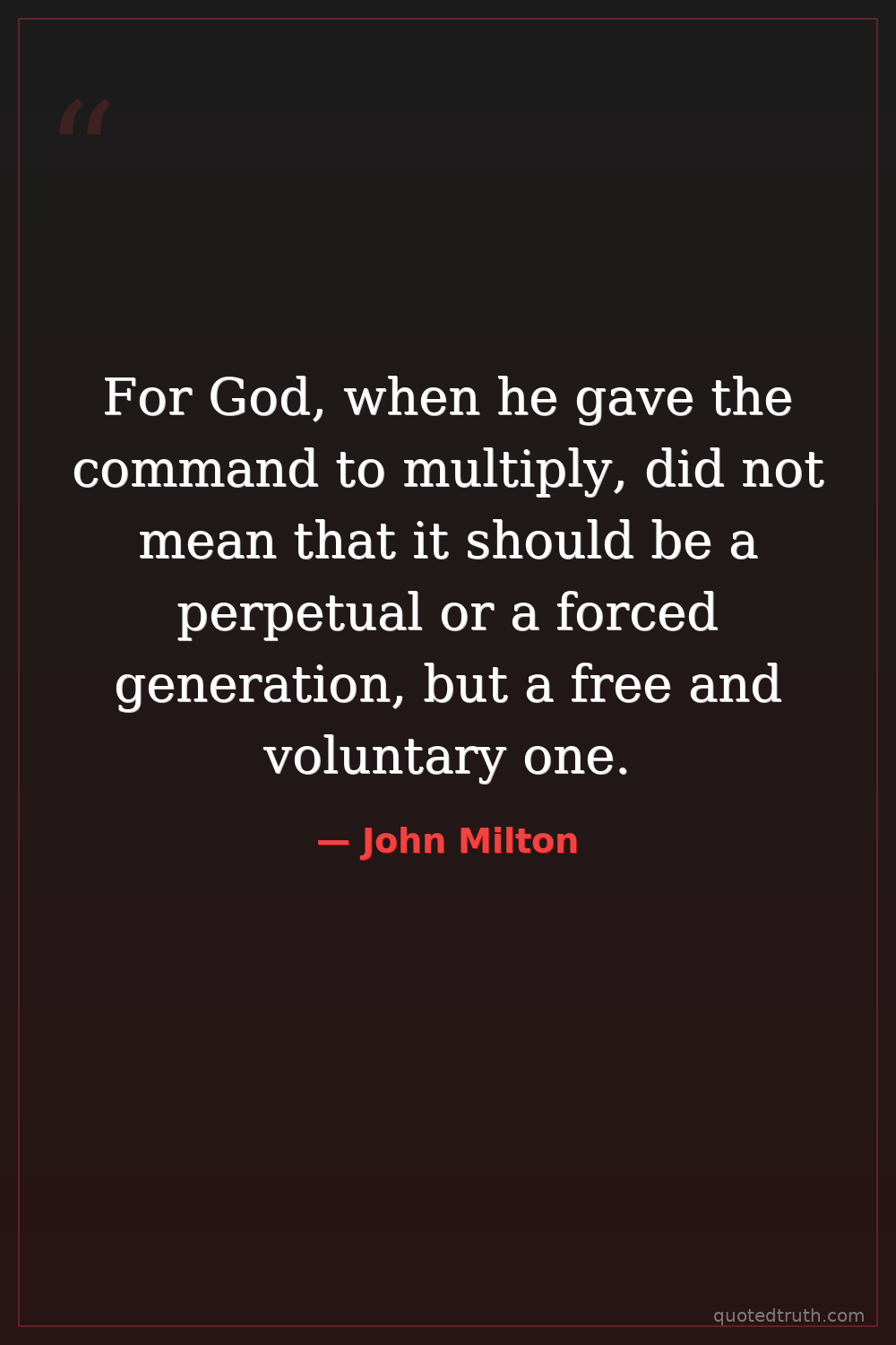 For God, when he gave the command to multiply, did not mean that it should be a perpetual or a forced generation, but a free and voluntary one.