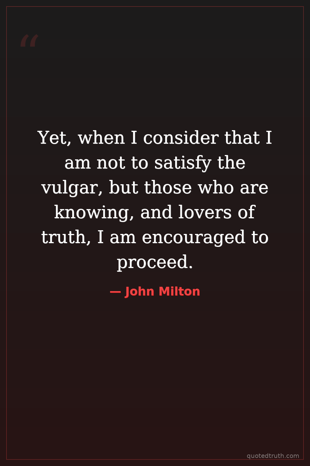 Yet, when I consider that I am not to satisfy the vulgar, but those who are knowing, and lovers of truth, I am encouraged to proceed.