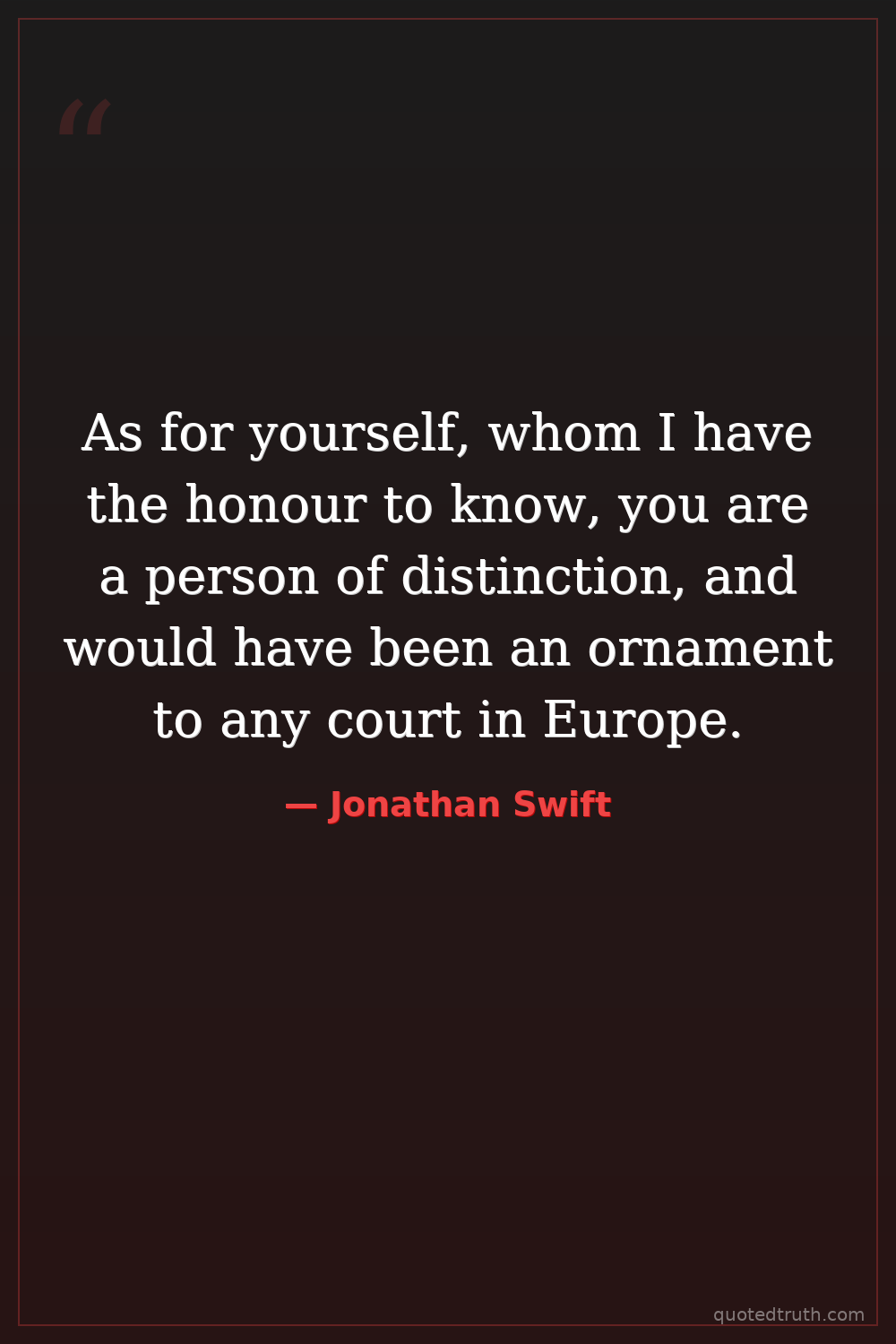 As for yourself, whom I have the honour to know, you are a person of distinction, and would have been an ornament to any court in Europe.