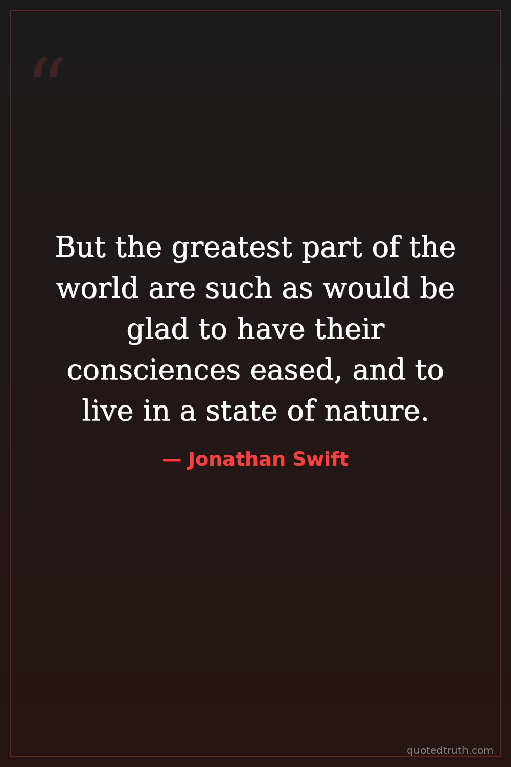 But the greatest part of the world are such as would be glad to have their consciences eased, and to live in a state of nature.
