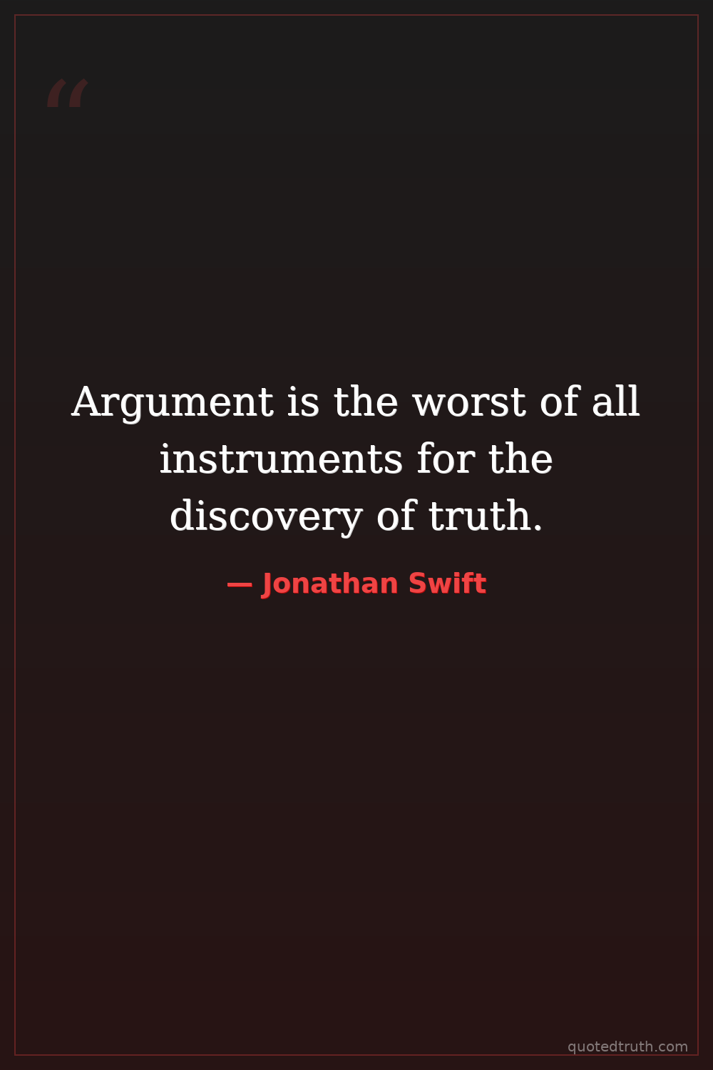 Argument is the worst of all instruments for the discovery of truth.