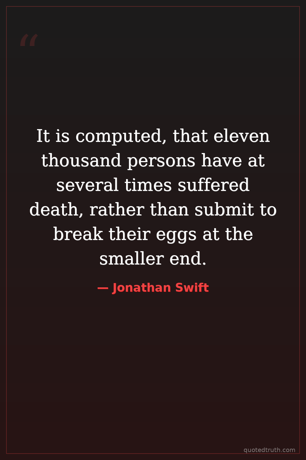It is computed, that eleven thousand persons have at several times suffered death, rather than submit to break their eggs at the smaller end.