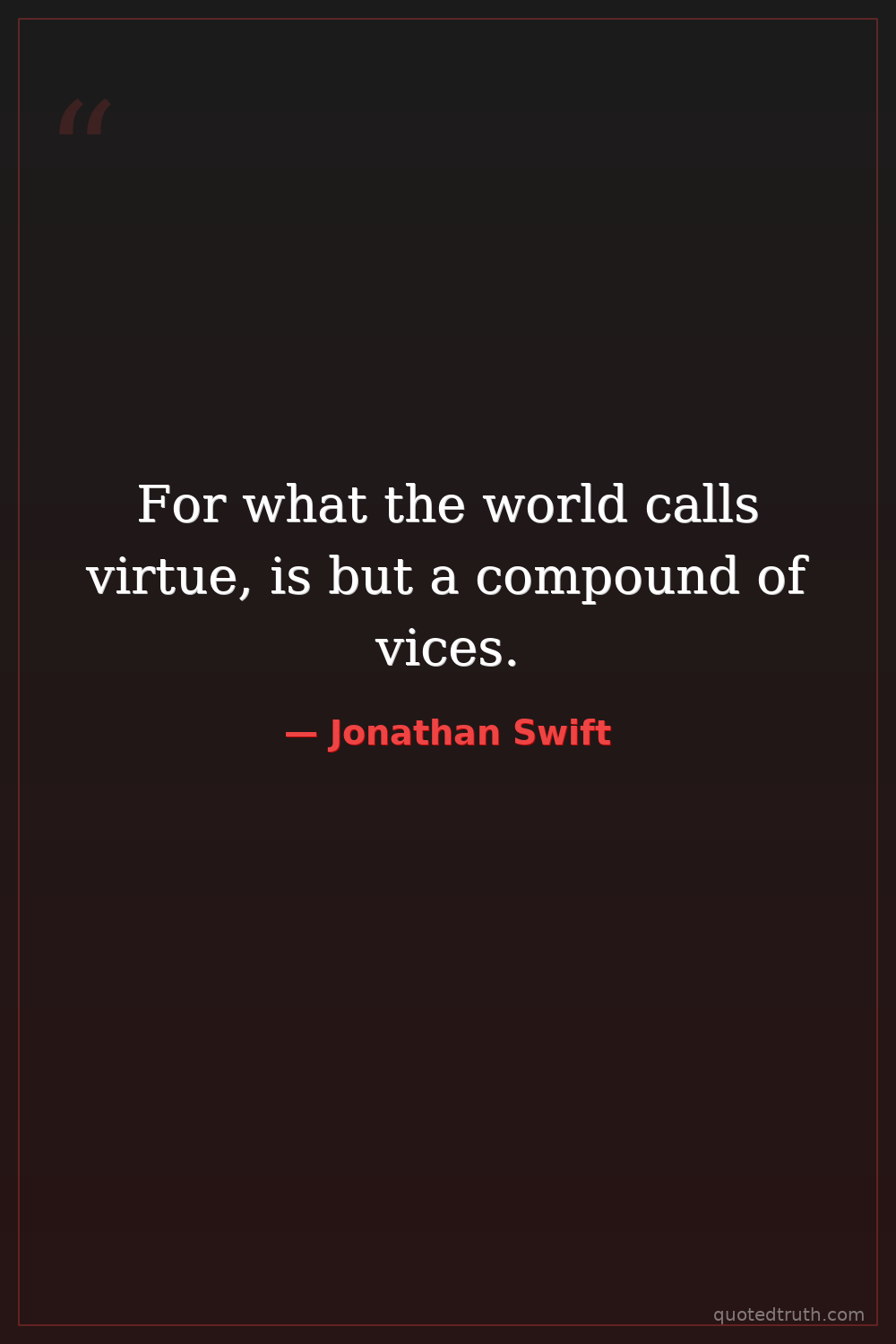 For what the world calls virtue, is but a compound of vices.