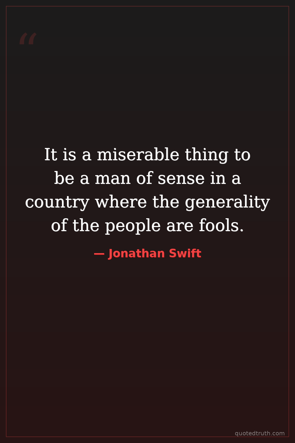 It is a miserable thing to be a man of sense in a country where the generality of the people are fools.
