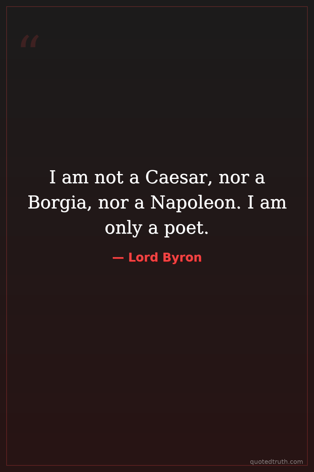 I am not a Caesar, nor a Borgia, nor a Napoleon. I am only a poet.