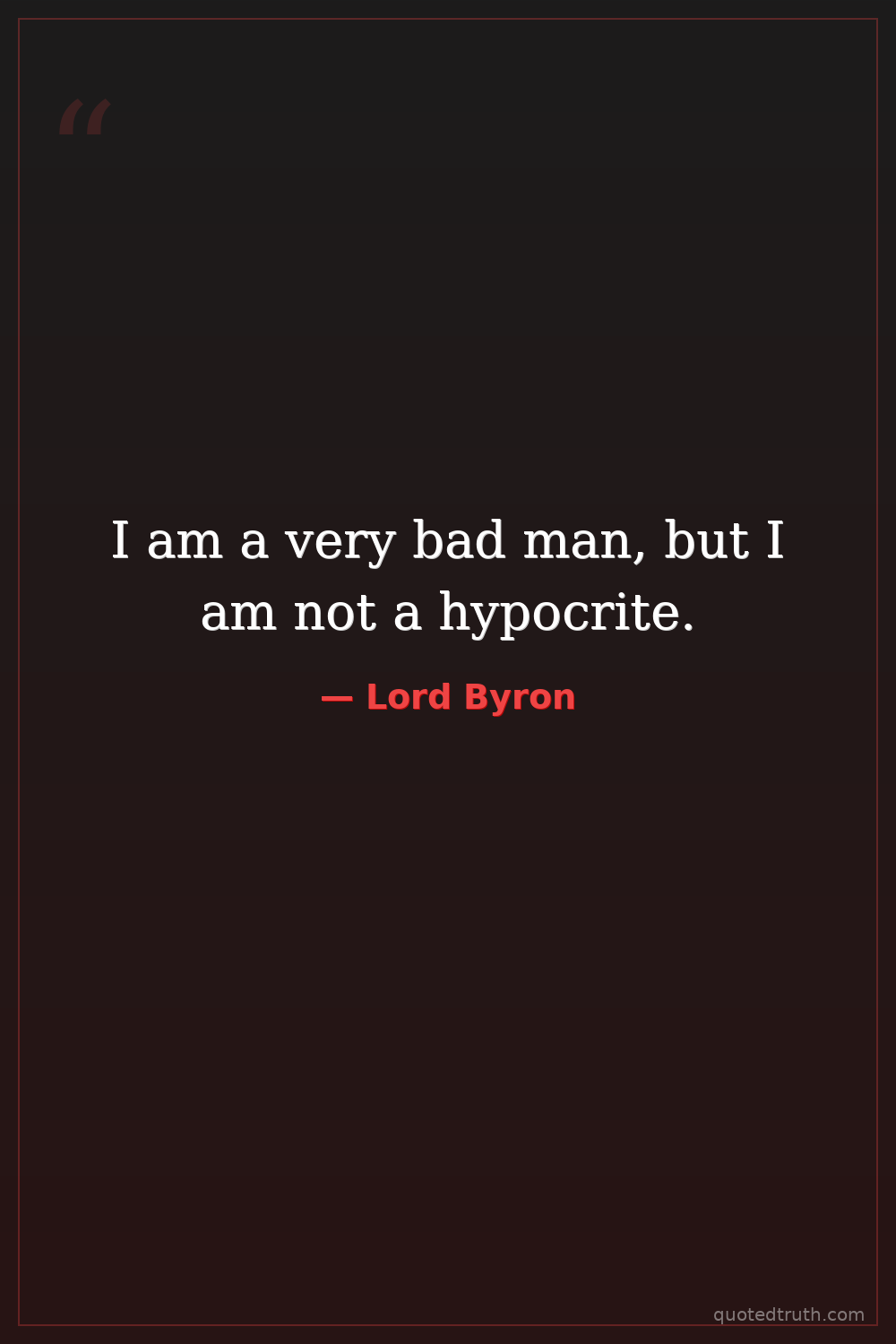 I am a very bad man, but I am not a hypocrite.