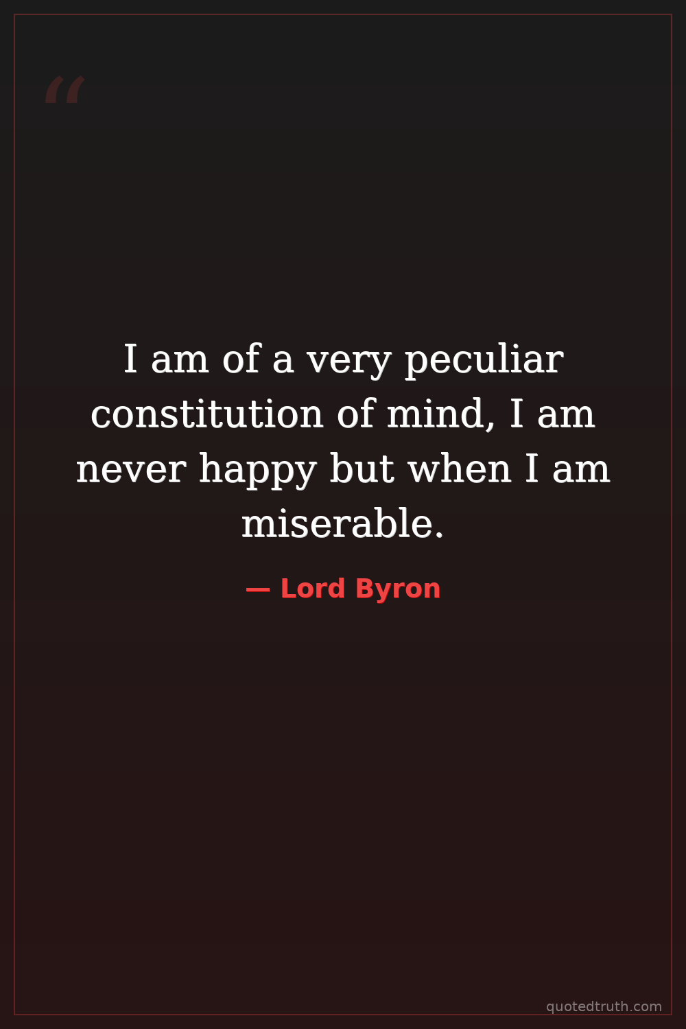 I am of a very peculiar constitution of mind, I am never happy but when I am miserable.