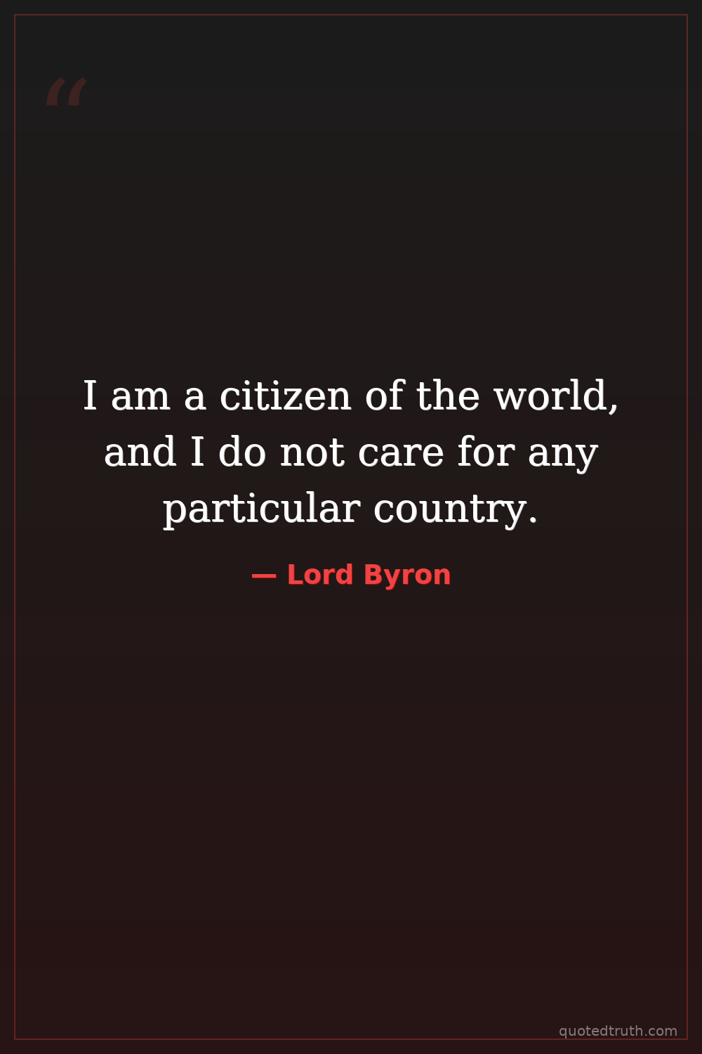 I am a citizen of the world, and I do not care for any particular country.