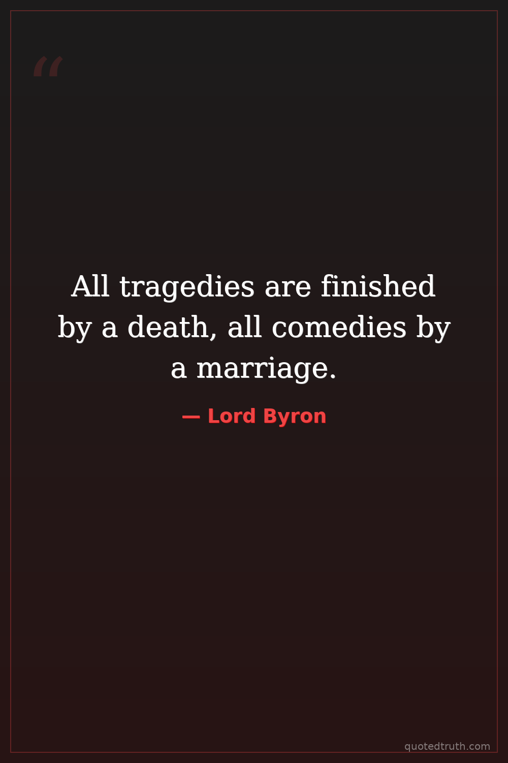 All tragedies are finished by a death, all comedies by a marriage.