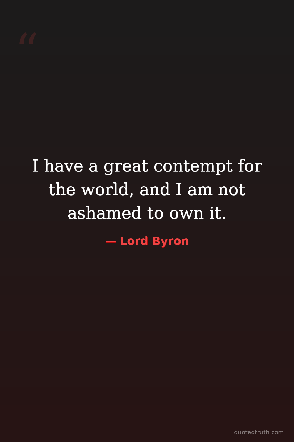 I have a great contempt for the world, and I am not ashamed to own it.