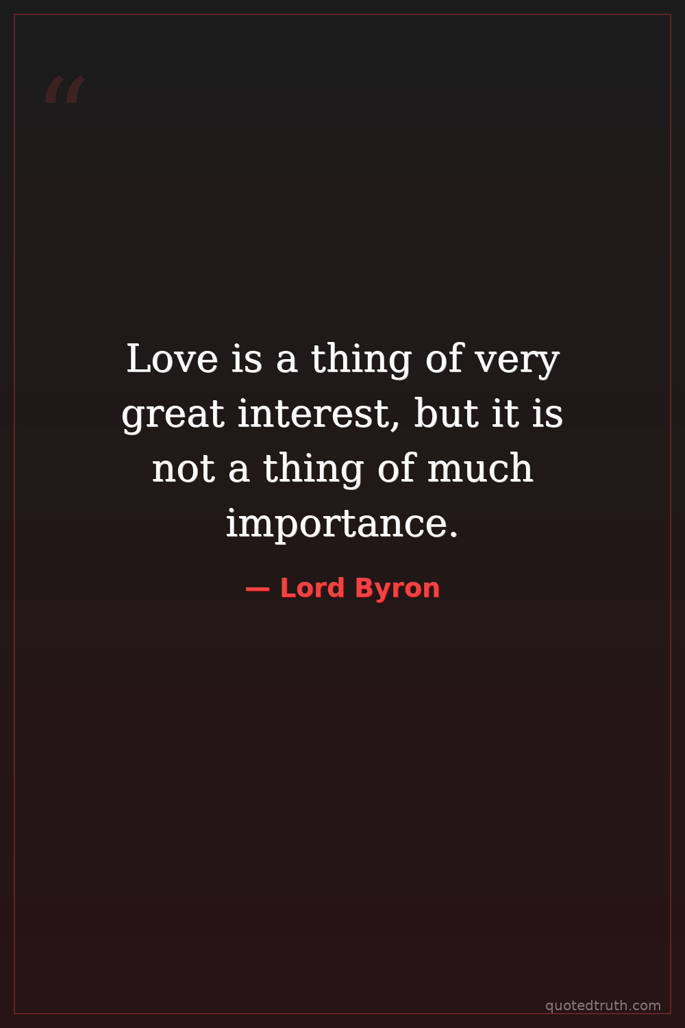 Love is a thing of very great interest, but it is not a thing of much importance.