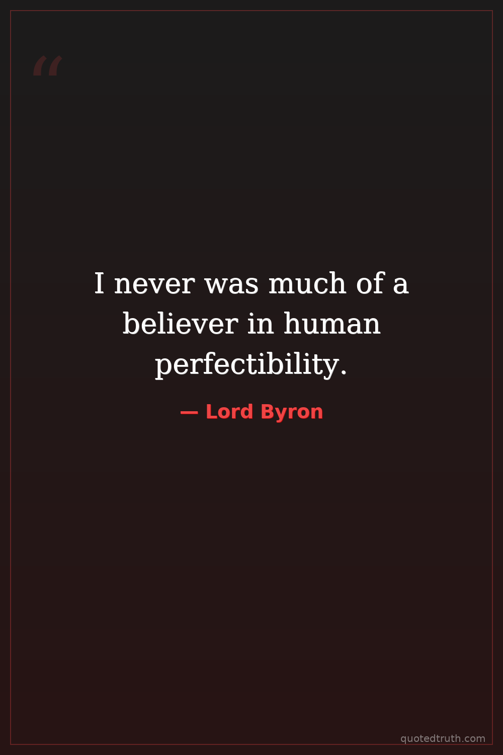 I never was much of a believer in human perfectibility.