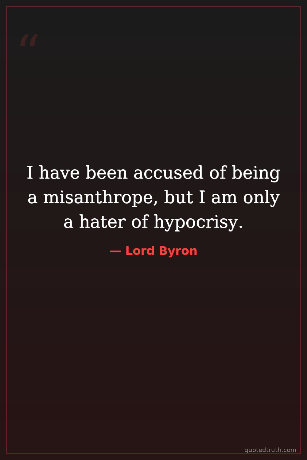 I have been accused of being a misanthrope, but I am only a hater of hypocrisy.