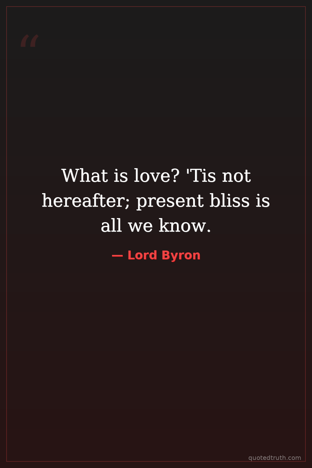 What is love? 'Tis not hereafter; present bliss is all we know.