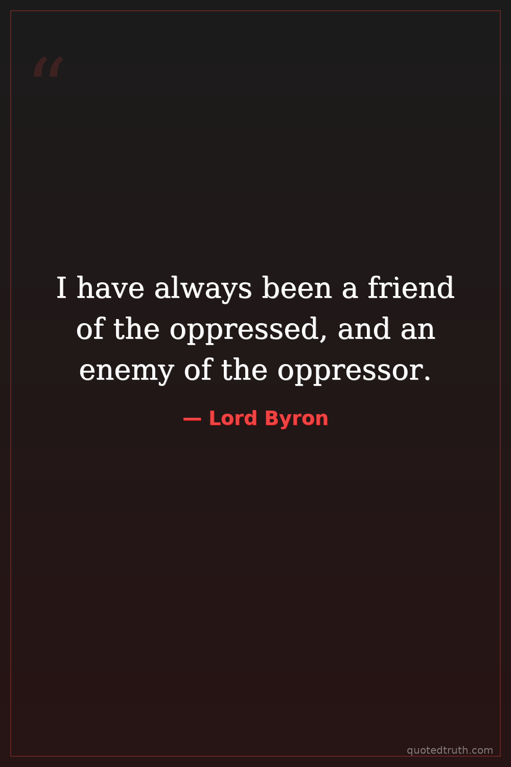 I have always been a friend of the oppressed, and an enemy of the oppressor.