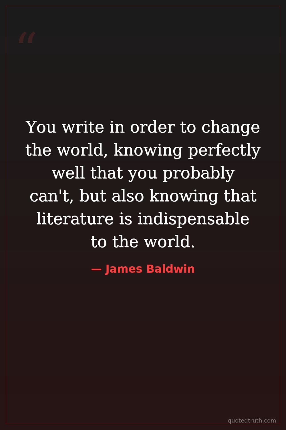 You write in order to change the world, knowing perfectly well that you probably can't, but also knowing that literature is indispensable to the world.