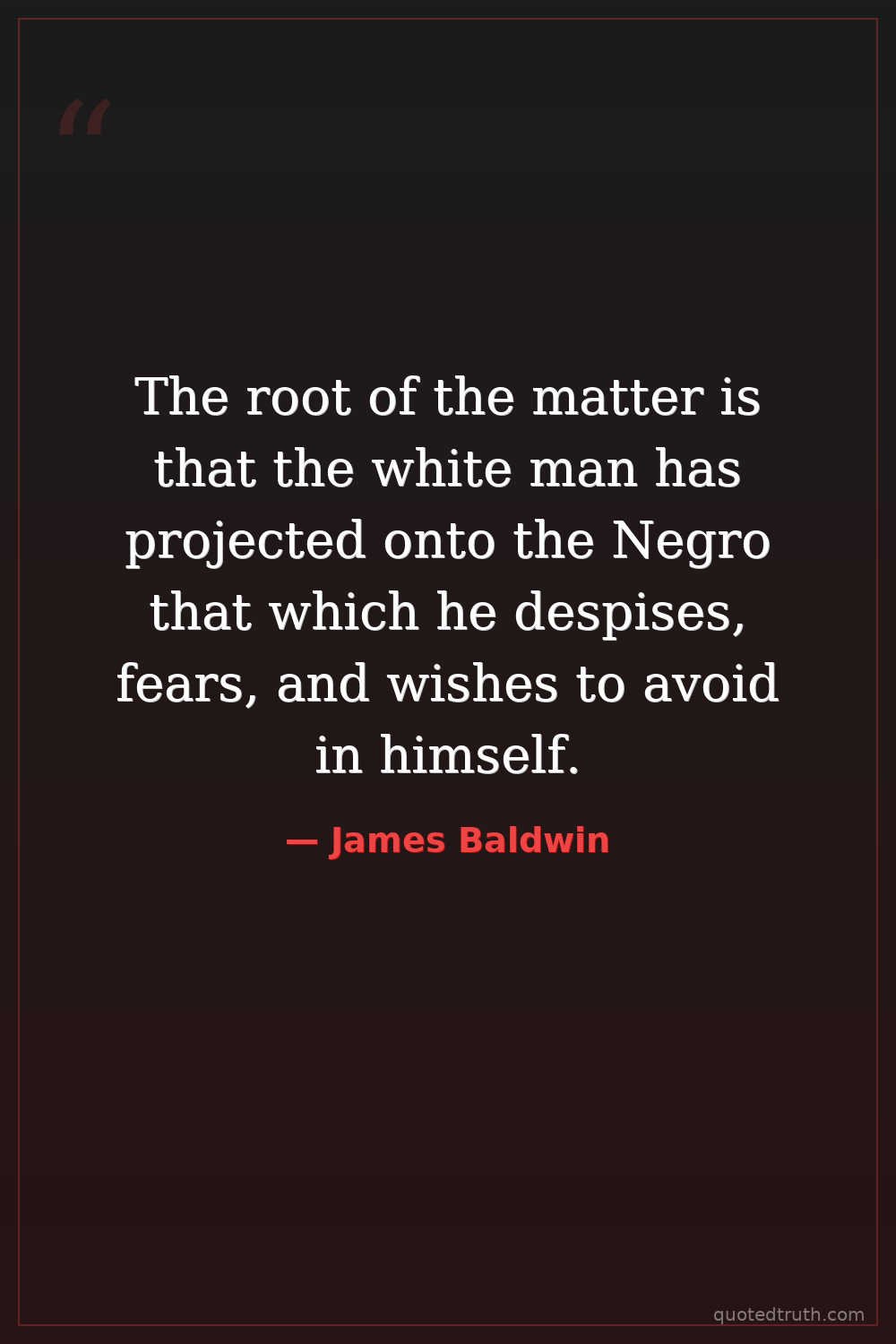 The root of the matter is that the white man has projected onto the Negro that which he despises, fears, and wishes to avoid in himself.
