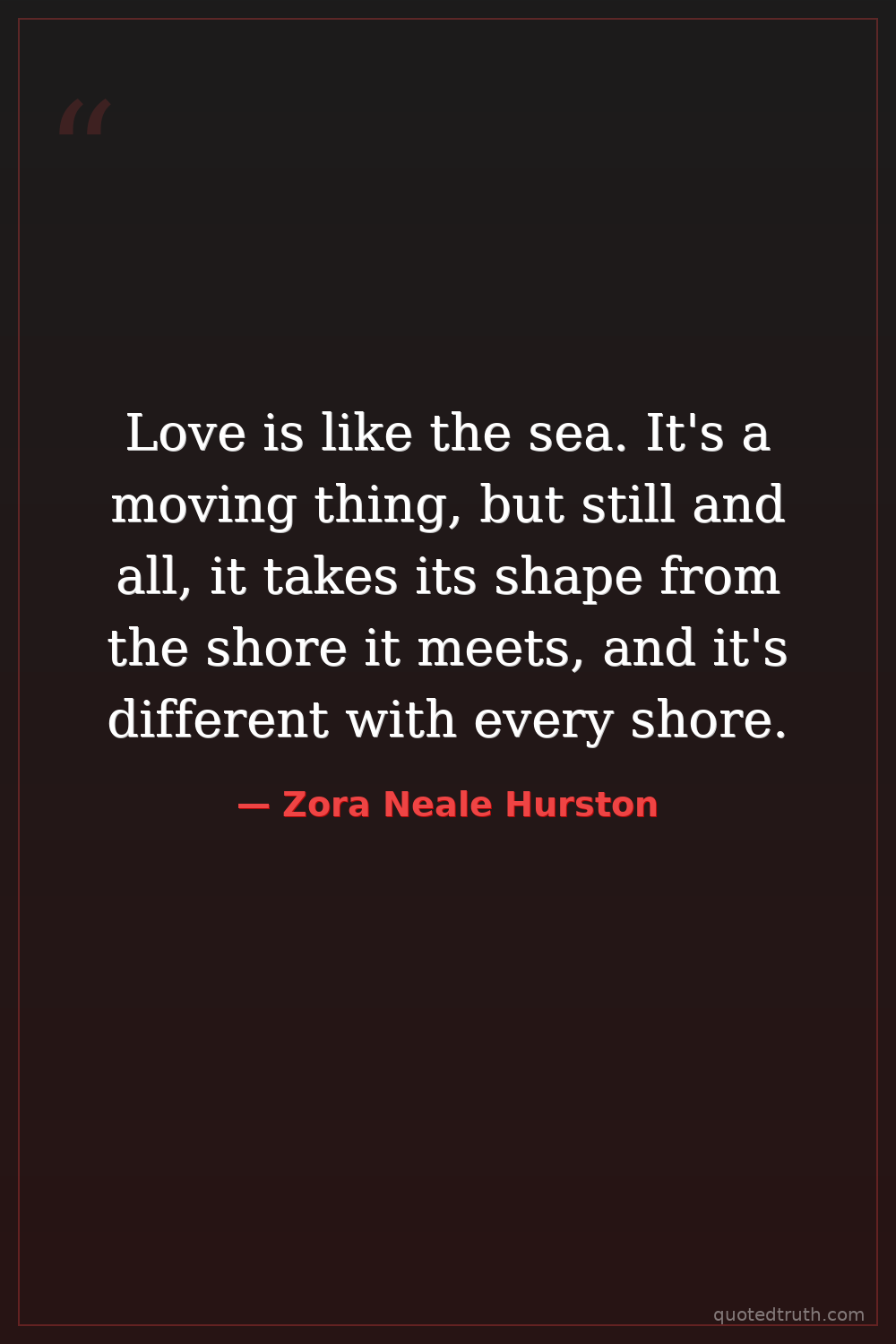 Love is like the sea. It's a moving thing, but still and all, it takes its shape from the shore it meets, and it's different with every shore.