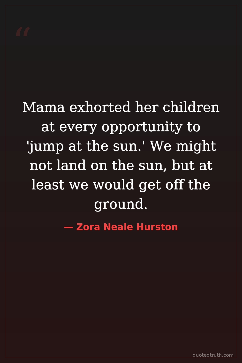 Mama exhorted her children at every opportunity to 'jump at the sun.' We might not land on the sun, but at least we would get off the ground.