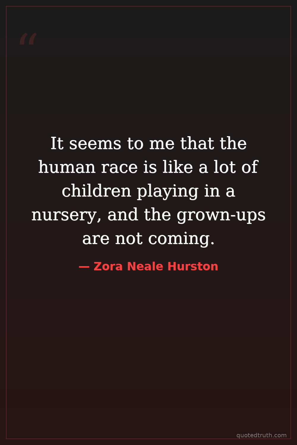 It seems to me that the human race is like a lot of children playing in a nursery, and the grown-ups are not coming.