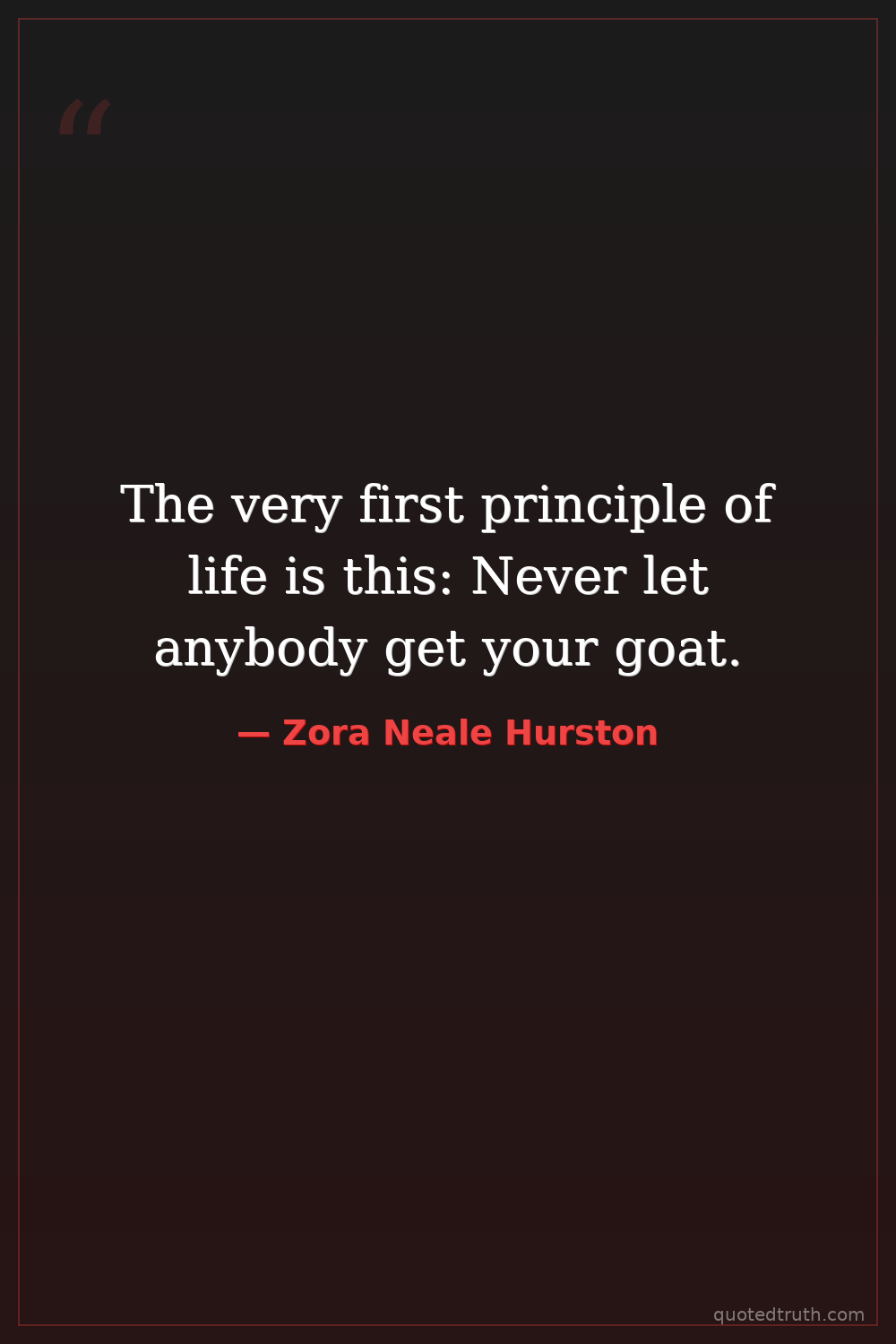 The very first principle of life is this: Never let anybody get your goat.