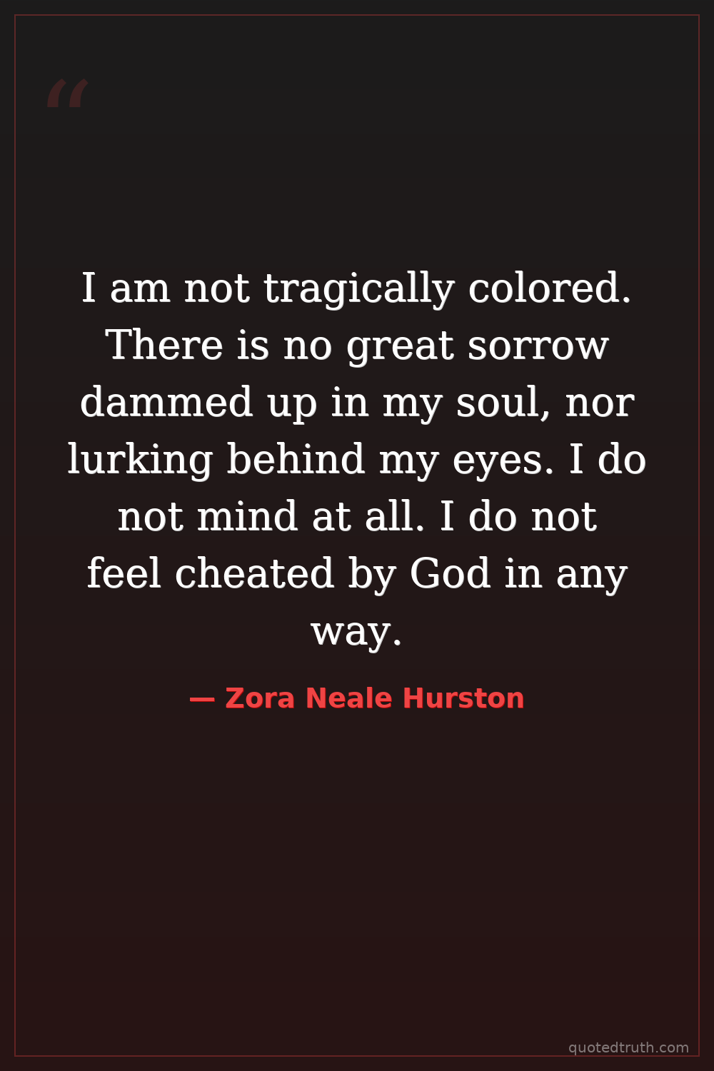 I am not tragically colored. There is no great sorrow dammed up in my soul, nor lurking behind my eyes. I do not mind at all. I do not feel cheated by God in any way.