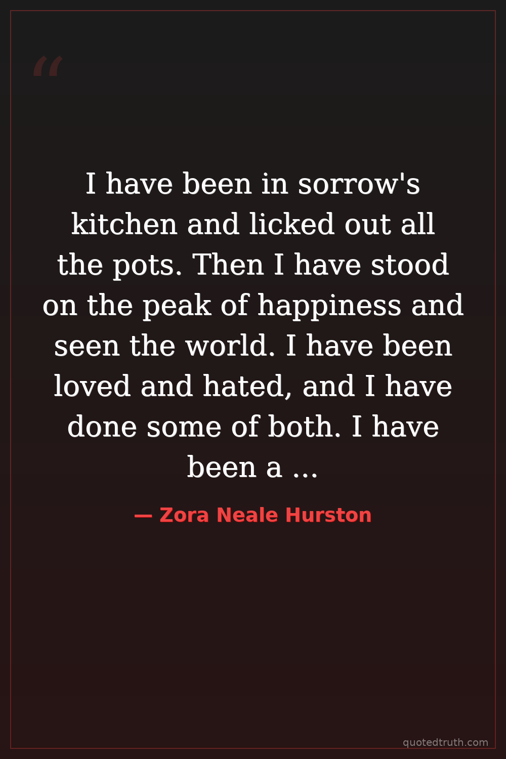 I have been in sorrow's kitchen and licked out all the pots. Then I have stood on the peak of happiness and seen the world. I have been loved and hated, and I have done some of both. I have been a friend and an enemy. I have been a teacher and a student. I have been a lover and a hater. I have been a winner and a loser. I have been a victim and an aggressor. I have been a saint and a sinner. I have been a hero and a villain. I have been a god and a demon. I have been a king and a pauper. I have been a warrior and a peacemaker. I have been a giver and a taker. I have been a creator and a destroyer. I have been a builder and a wrecker. I have been a healer and a killer. I have been a savior and a destroyer. I have been a life-giver and a death-dealer. I have been a good person and a bad person. I have been a human being.