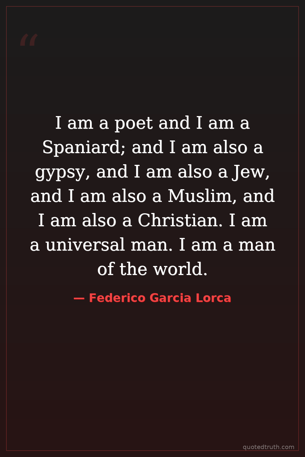 I am a poet and I am a Spaniard; and I am also a gypsy, and I am also a Jew, and I am also a Muslim, and I am also a Christian. I am a universal man. I am a man of the world.