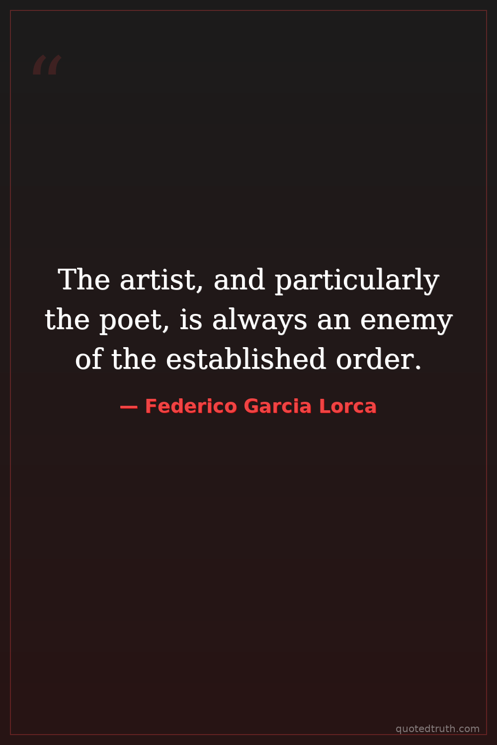 The artist, and particularly the poet, is always an enemy of the established order.