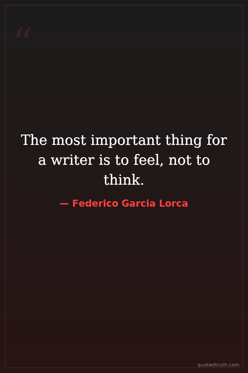 The most important thing for a writer is to feel, not to think.