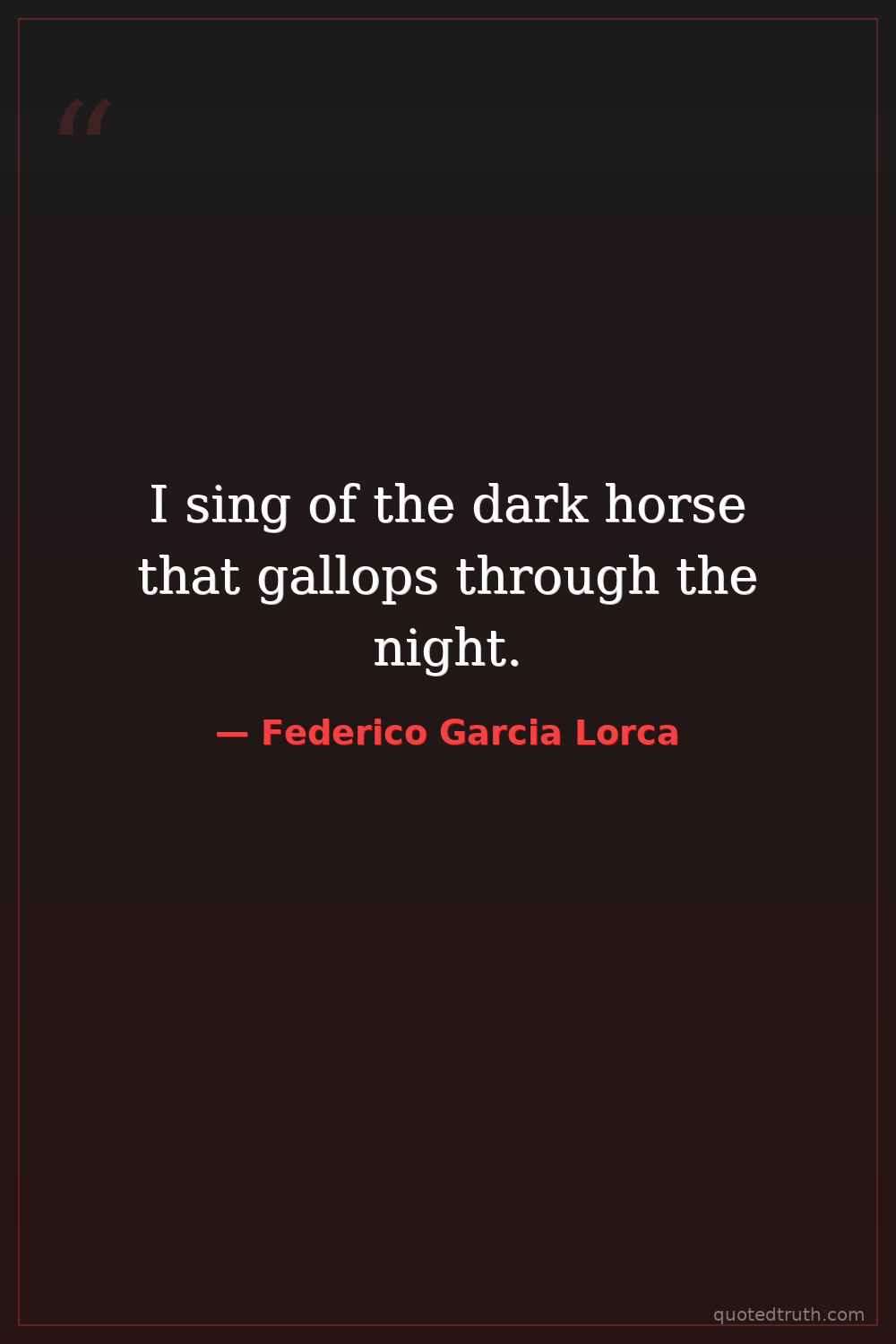 I sing of the dark horse that gallops through the night.