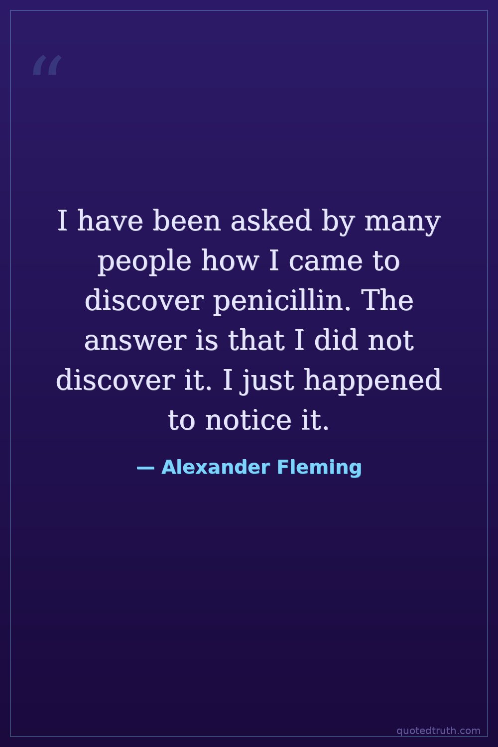 I have been asked by many people how I came to discover penicillin. The answer is that I did not discover it. I just happened to notice it.