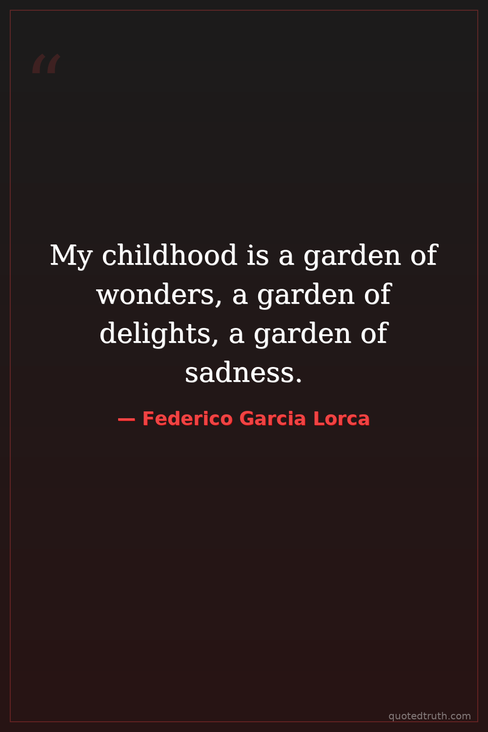 My childhood is a garden of wonders, a garden of delights, a garden of sadness.