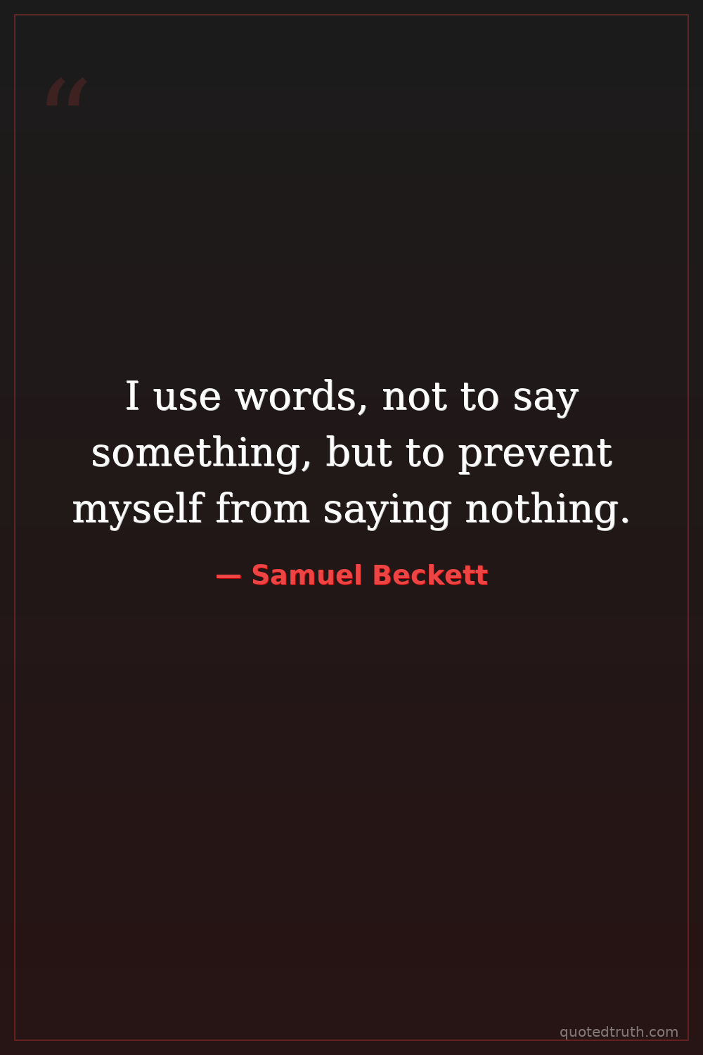 I use words, not to say something, but to prevent myself from saying nothing.