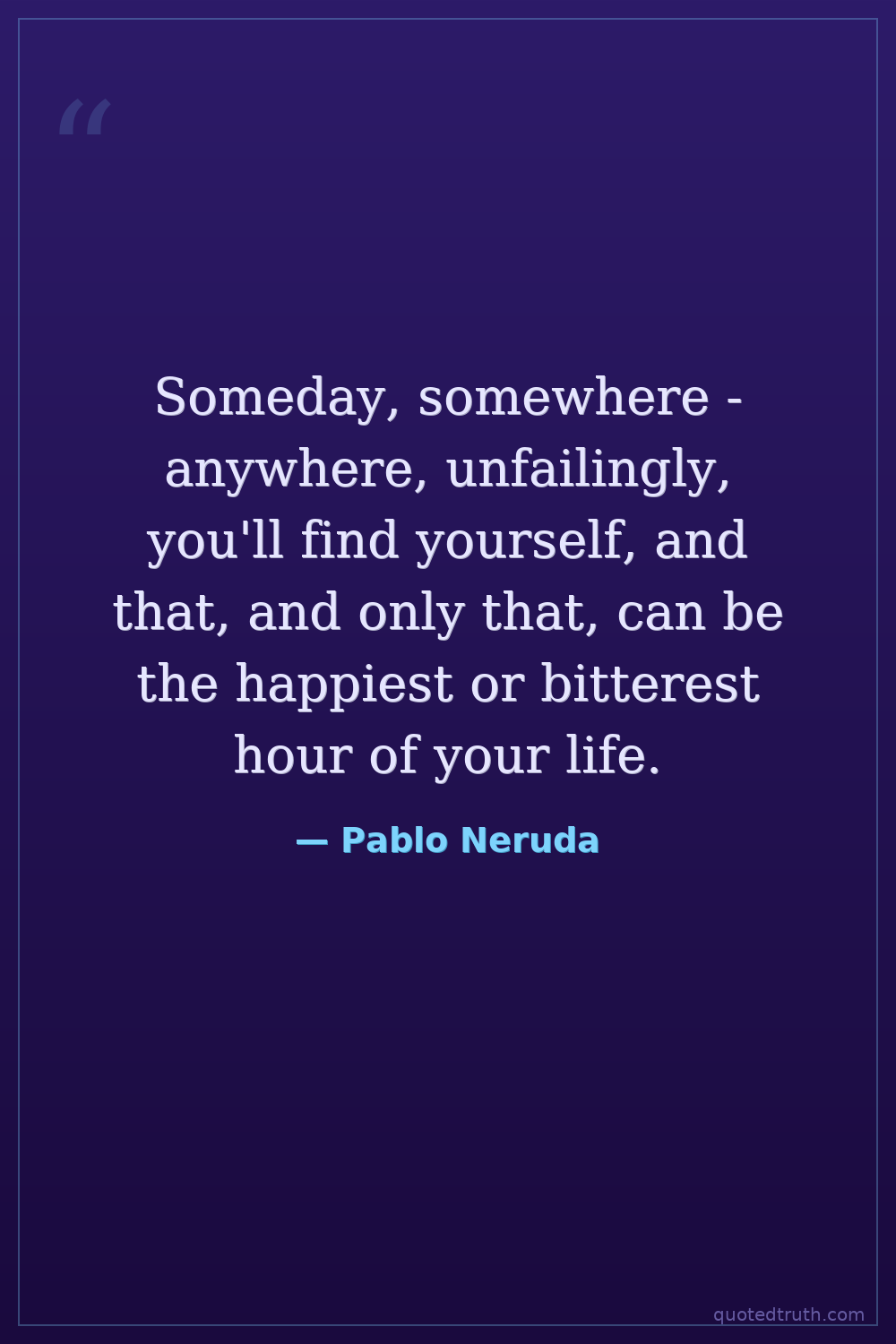 Someday, somewhere - anywhere, unfailingly, you'll find yourself, and that, and only that, can be the happiest or bitterest hour of your life.