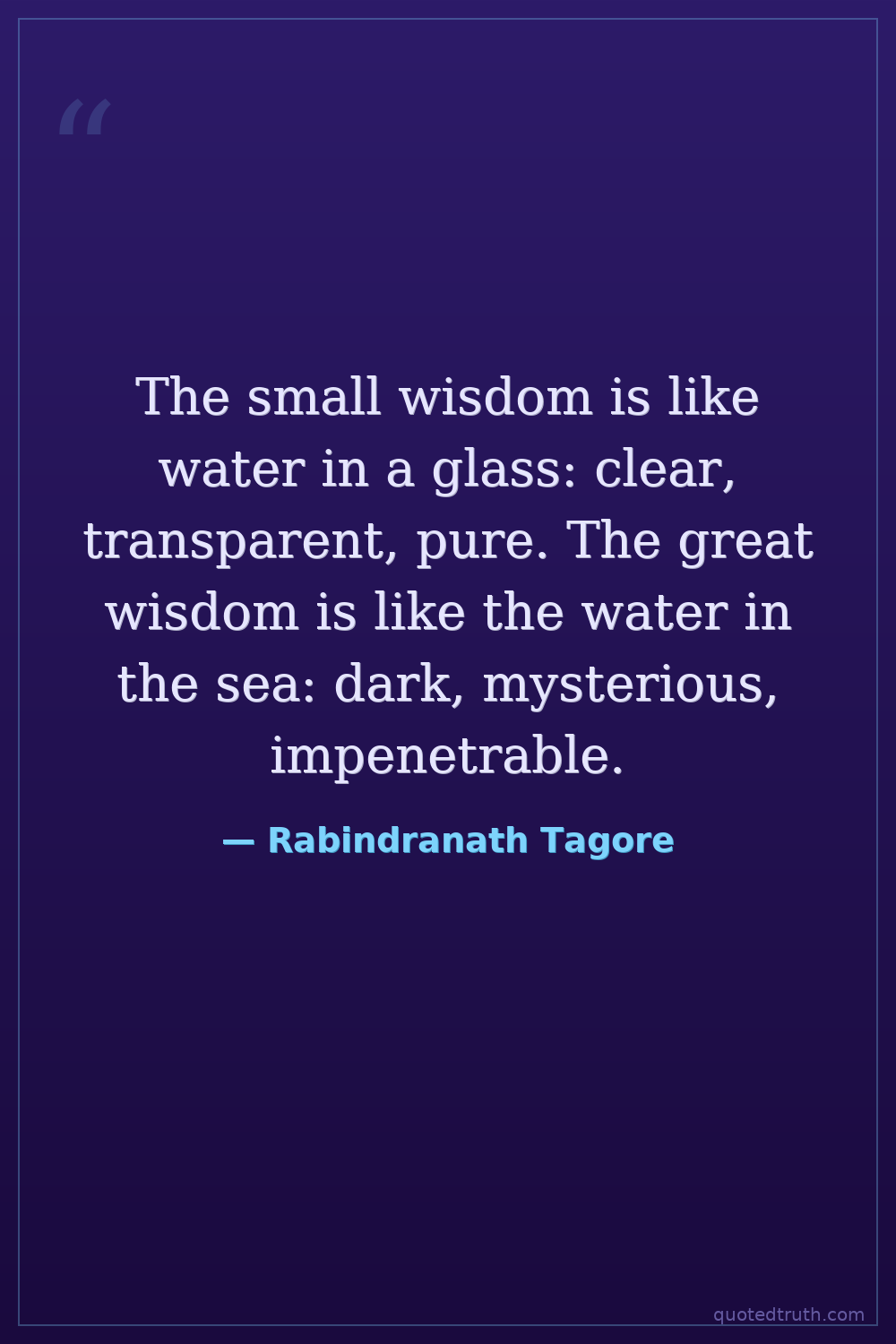The small wisdom is like water in a glass: clear, transparent, pure. The great wisdom is like the water in the sea: dark, mysterious, impenetrable.