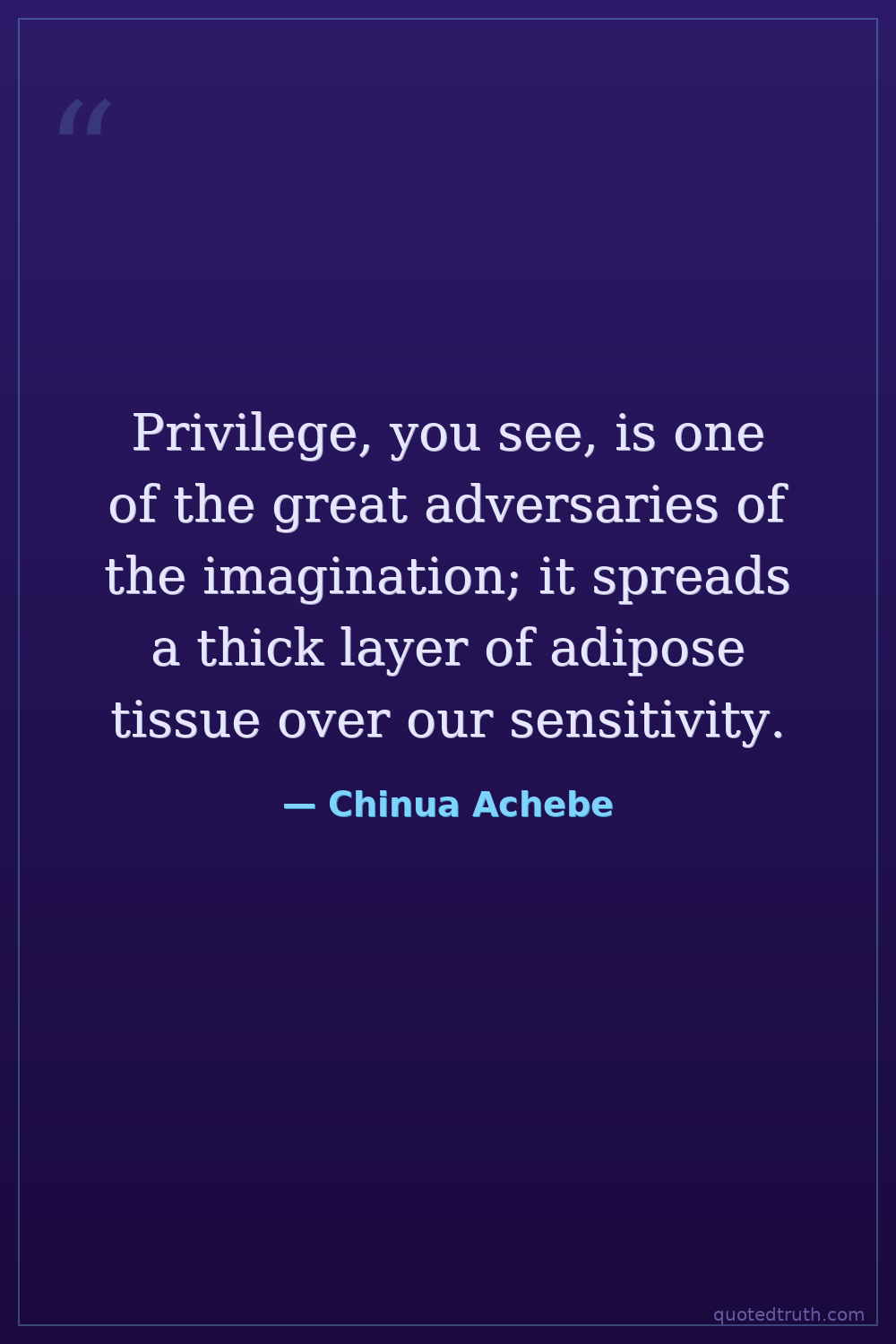 Privilege, you see, is one of the great adversaries of the imagination; it spreads a thick layer of adipose tissue over our sensitivity.