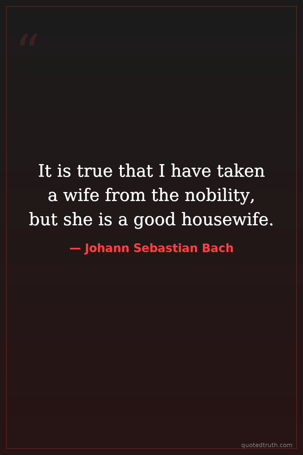 Attributed, possibly in response to criticism or observation about his marriage to Anna Magdalena Bach, who was from a lower social standing than some of his previous positions might have expected.