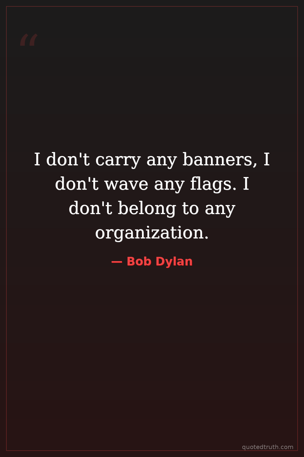I don't carry any banners, I don't wave any flags. I don't belong to any organization.